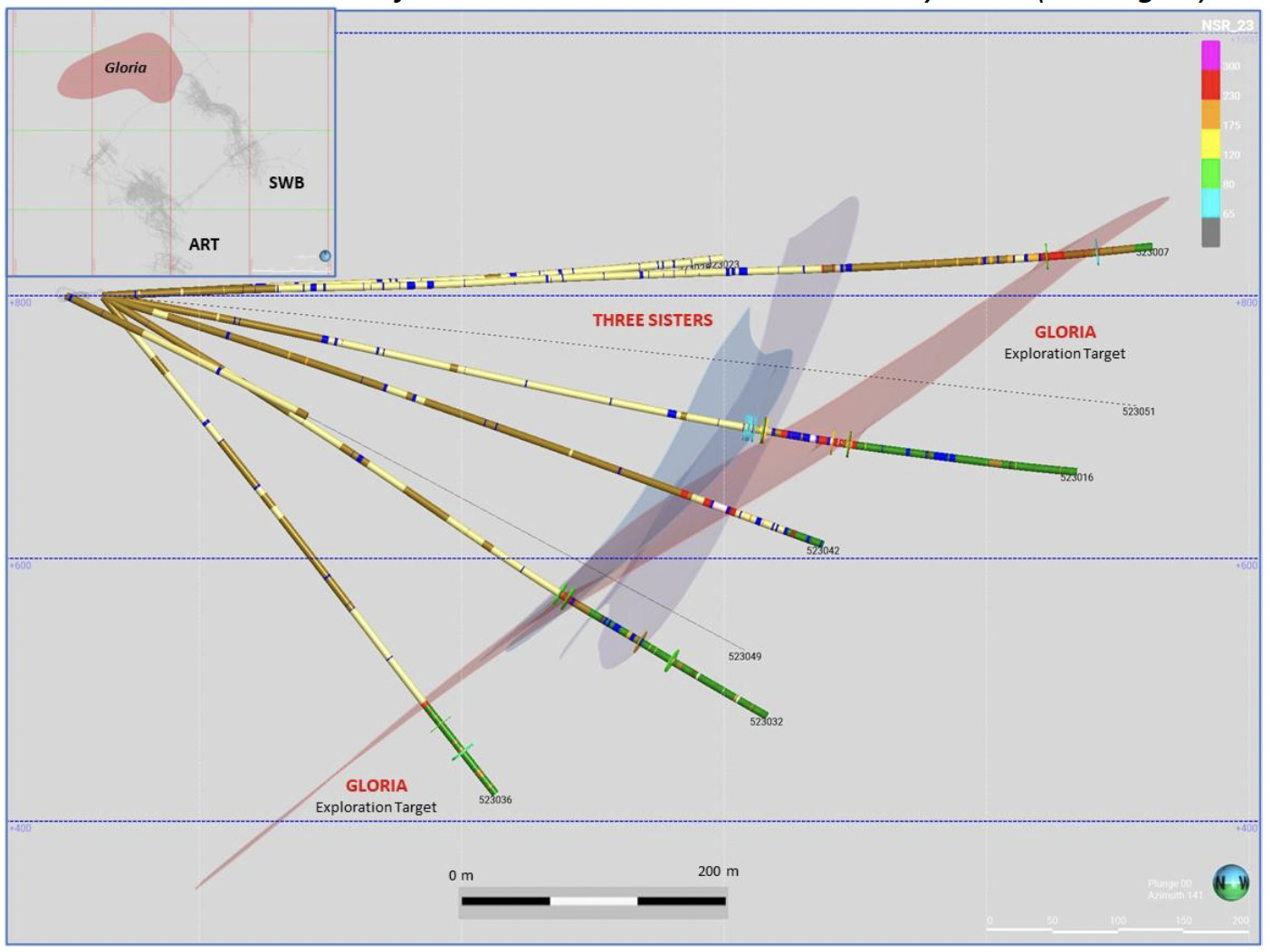 Highlights from Hole No. 523016 which intersected both the Three Sisters and Gloria vein systems are as follow: