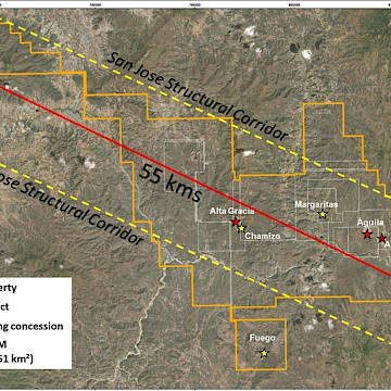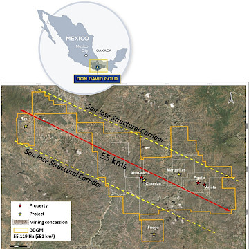 Gold Resource Corporation controls a 100% interest in a large, highly prospective land position in Oaxaca, Mexico. The Company’s six properties cover over 55,000 hectares (551 km²) and span approximately 55 kilometers along the northwest trending San José structural corridor.